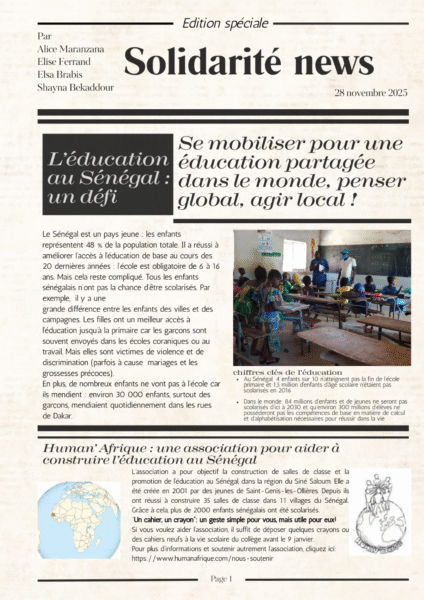 Par avance, merci pour votre participation à cette action de solidarité, qui enrichit le parcours citoyen de nos élèves.